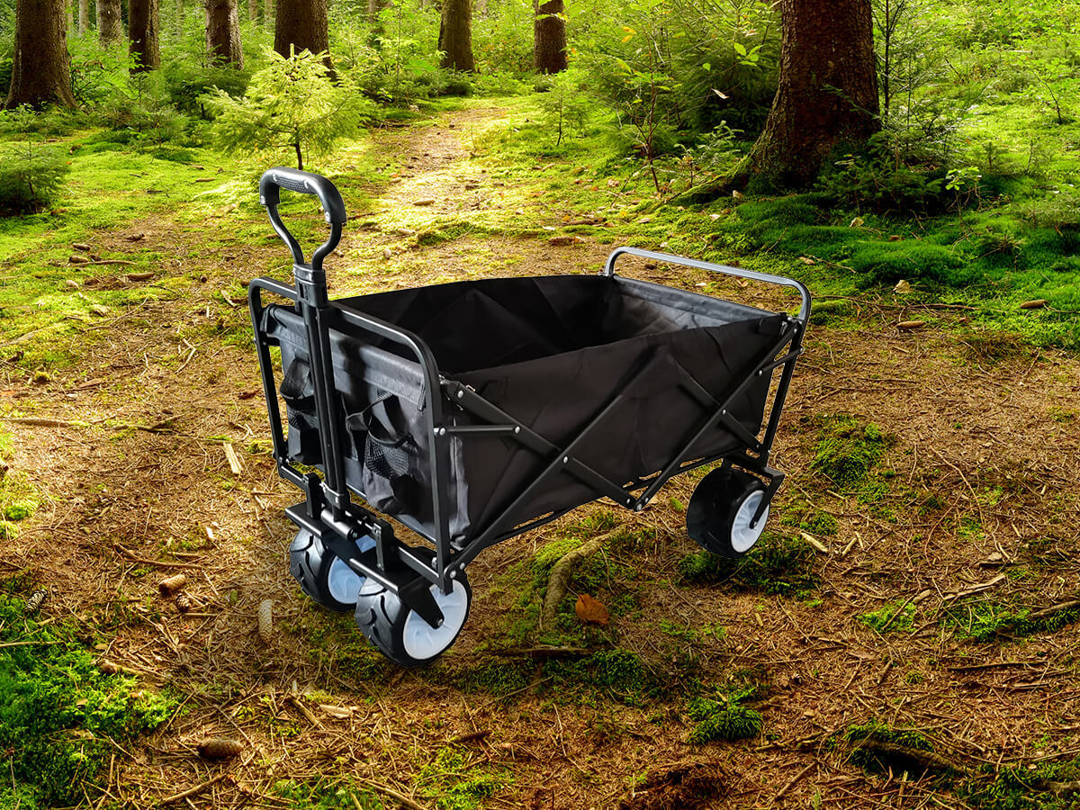 שלדת מתכת מגולוונת צבועה. בד פוליאסטר מחוזק. גלגלי טראק עבים במיוחד לנסיעה בחולות. עגלה מתקפלת, קלת משקל מאפשרת נשיאה של ציוד בקלות ויעילות בשטח, אספלט, דשא, ים.